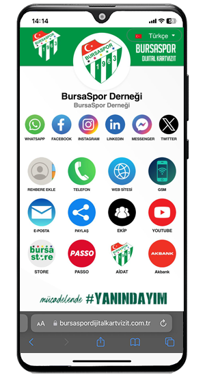 BursaSpor Dijital Kartvizit ile sosyal medyada işinizi parlatın, profesyonel kimliğinizi dijital dünyada yükseltin.