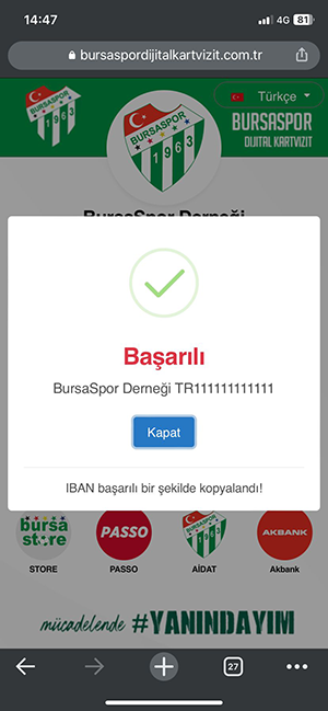 BursaSpor Dijital Kartvizit ile iş ödemelerinizi kolayca alıp gönderin, BursaSpor Dijital Kartvizit ile finansal işlemlerinizi kolaylaştırın.