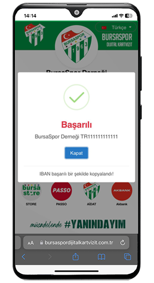 BursaSpor Dijital Kartvizit ile iş ödemelerinizi kolayca alıp gönderin, BursaSpor Dijital Kartvizit ile finansal işlemlerinizi kolaylaştırın.
